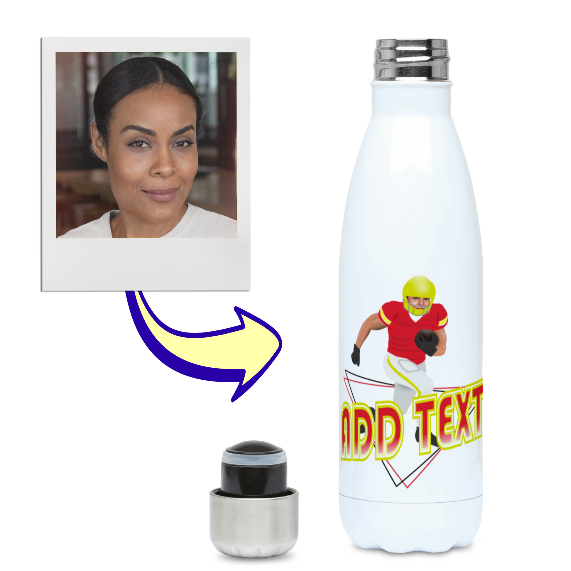 Custom Photo Football Flask - Superbowl-Inspired Water Bottle - Any Team Colours - American Football Gift - 500ml Flask