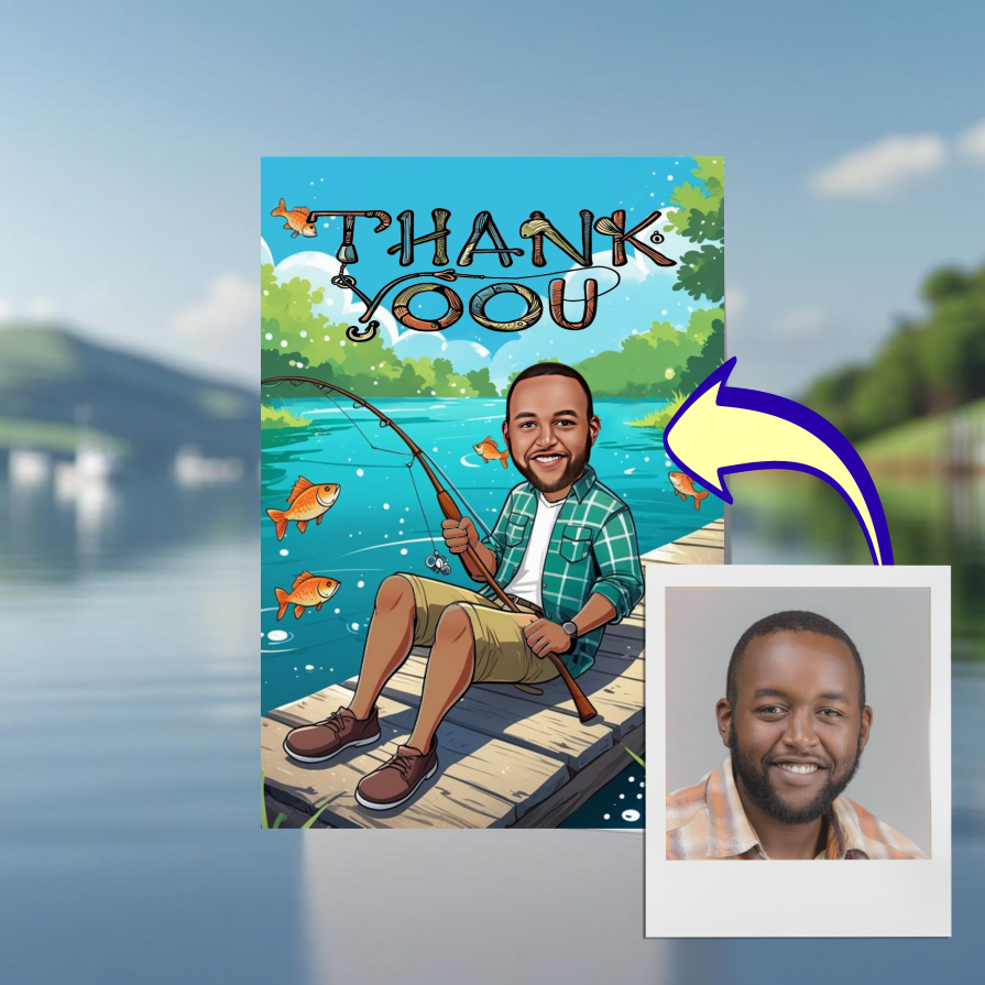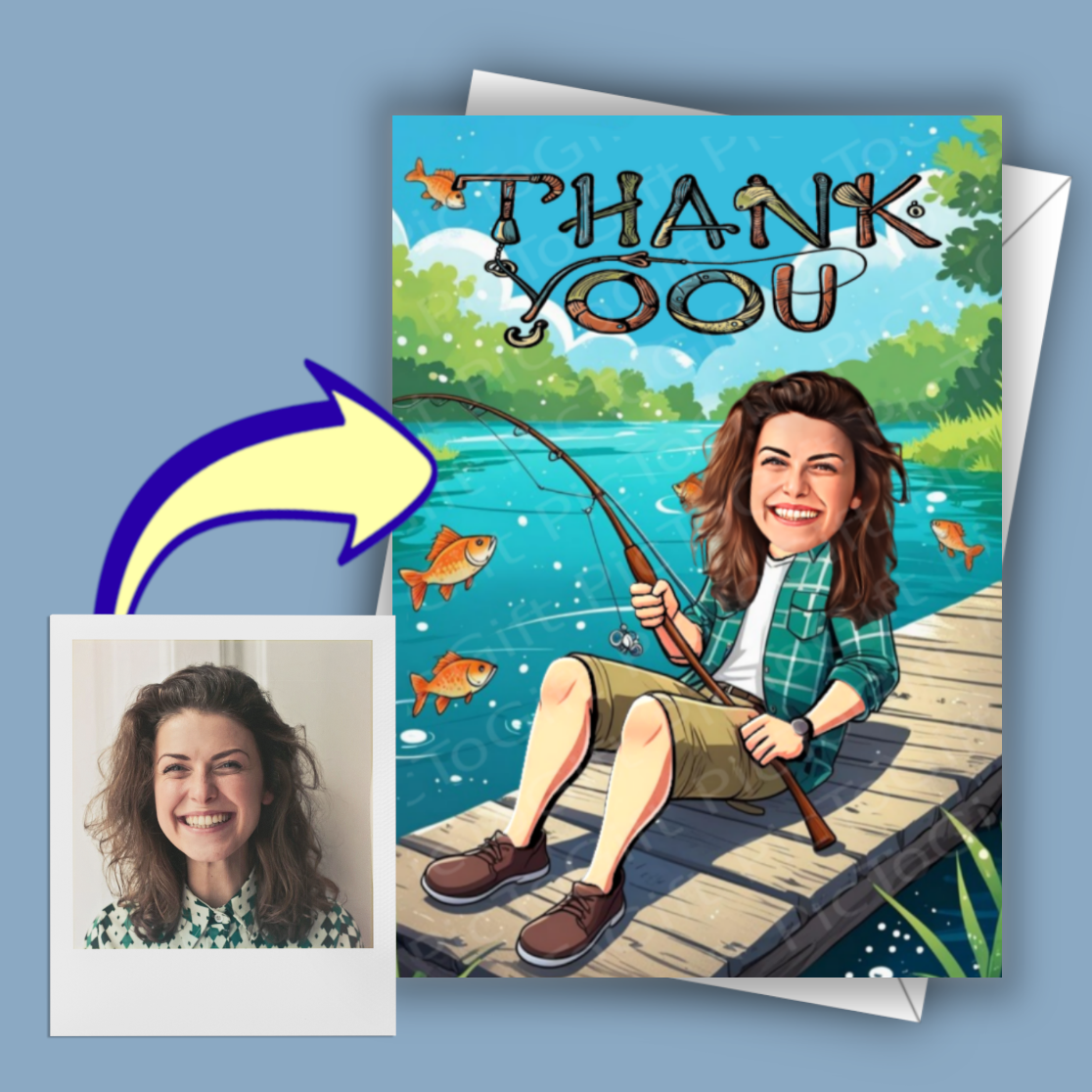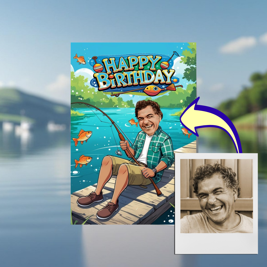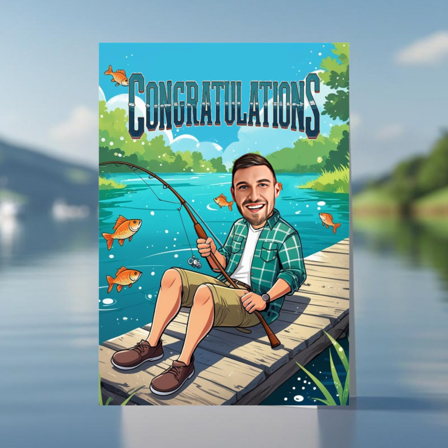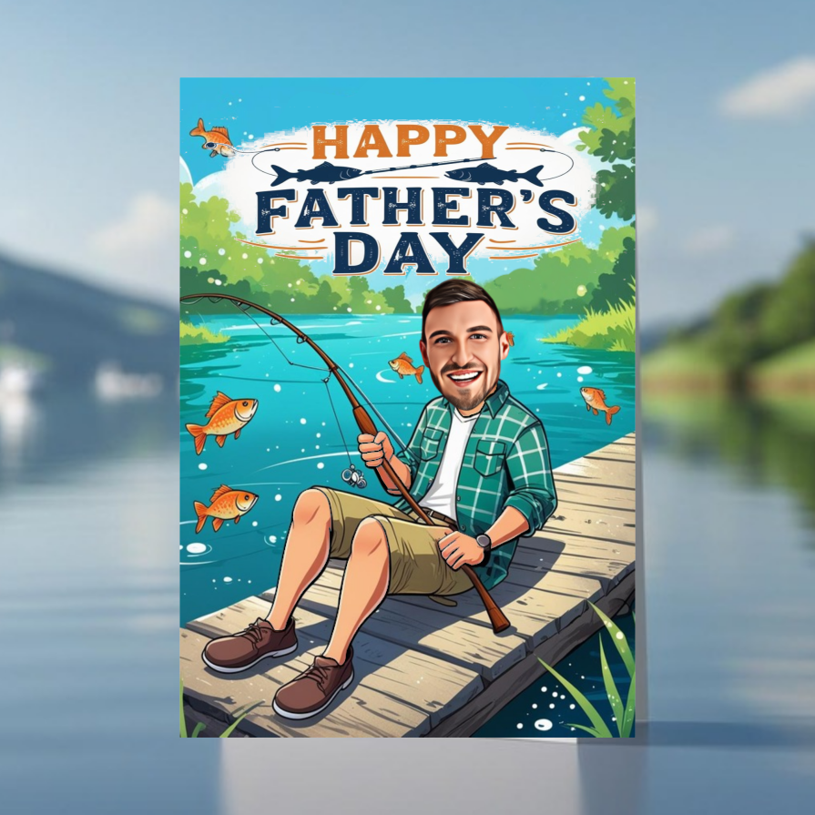 Reel them in with this hilarious fishing card! Add their face to a cartoon fisherman and customise your message for Father’s Day, birthdays, or just because. Perfect for dads, grandads, or anyone who loves a quiet day on the lake.