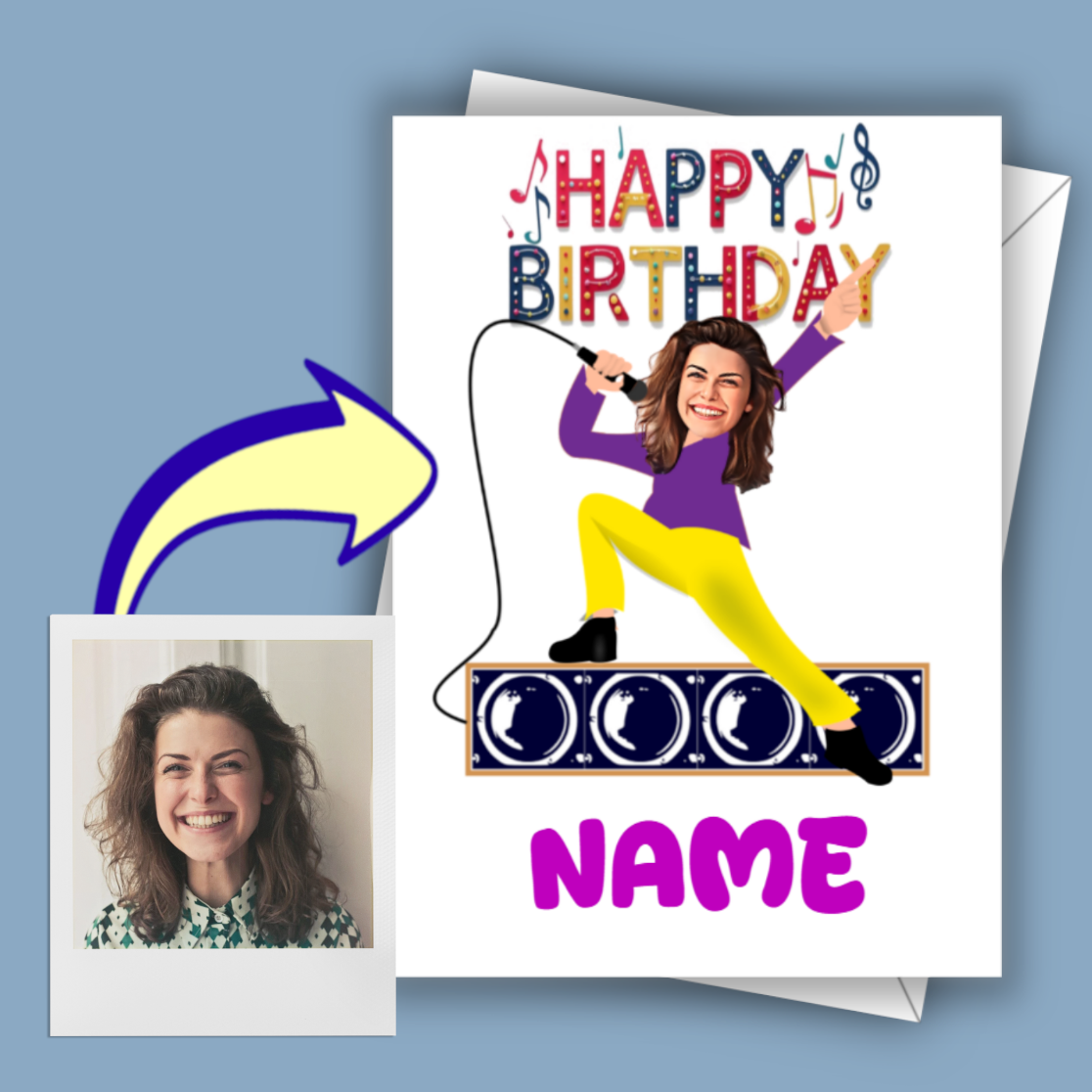 Turn their next birthday or Father’s Day into a full-blown karaoke night (without the mic feedback) with this hilarious personalised karaoke singer card! Featuring their face on a dramatic mid-performance character, this card is perfect for anyone who thinks they’re the star of every party or the next talent show winner. Whether they belt out ballads or scream pop bangers in the shower, this card guarantees a laugh and a smile!